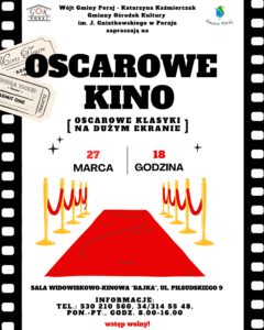 Serdecznie zapraszamy na dzisiejszy seans w ramach wydarzenia „Oscarowe Kino – oscarowe klasyki na dużym ekranie”, który odbędzie się 27 marca o godzinie 18:00 w sali widowiskowo-kinowej „Bajka” w Poraju.