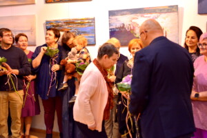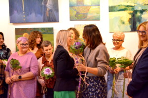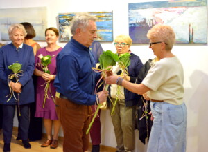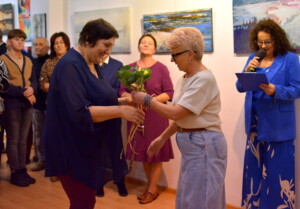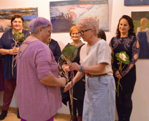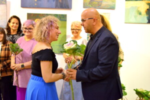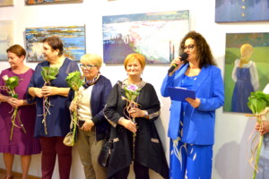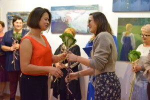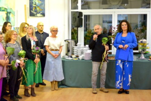 Wszyscy autorzy otrzymali kwiaty w ramach podziękowania za udział w plenerze. [- W zasadzie mogę już chyba powiedzieć, że wszyscy tu tworzymy jedną, wielką, artystyczną rodzinę. Dziękuję Wam za życzliwość, za waszą pasję i współpracę z naszą instytucją kultury. Oczywiście polecamy się na kolejne lata i kolejne projekty]- powiedziała dyr. GOK – Magdalena Ryziuk-Wilk.