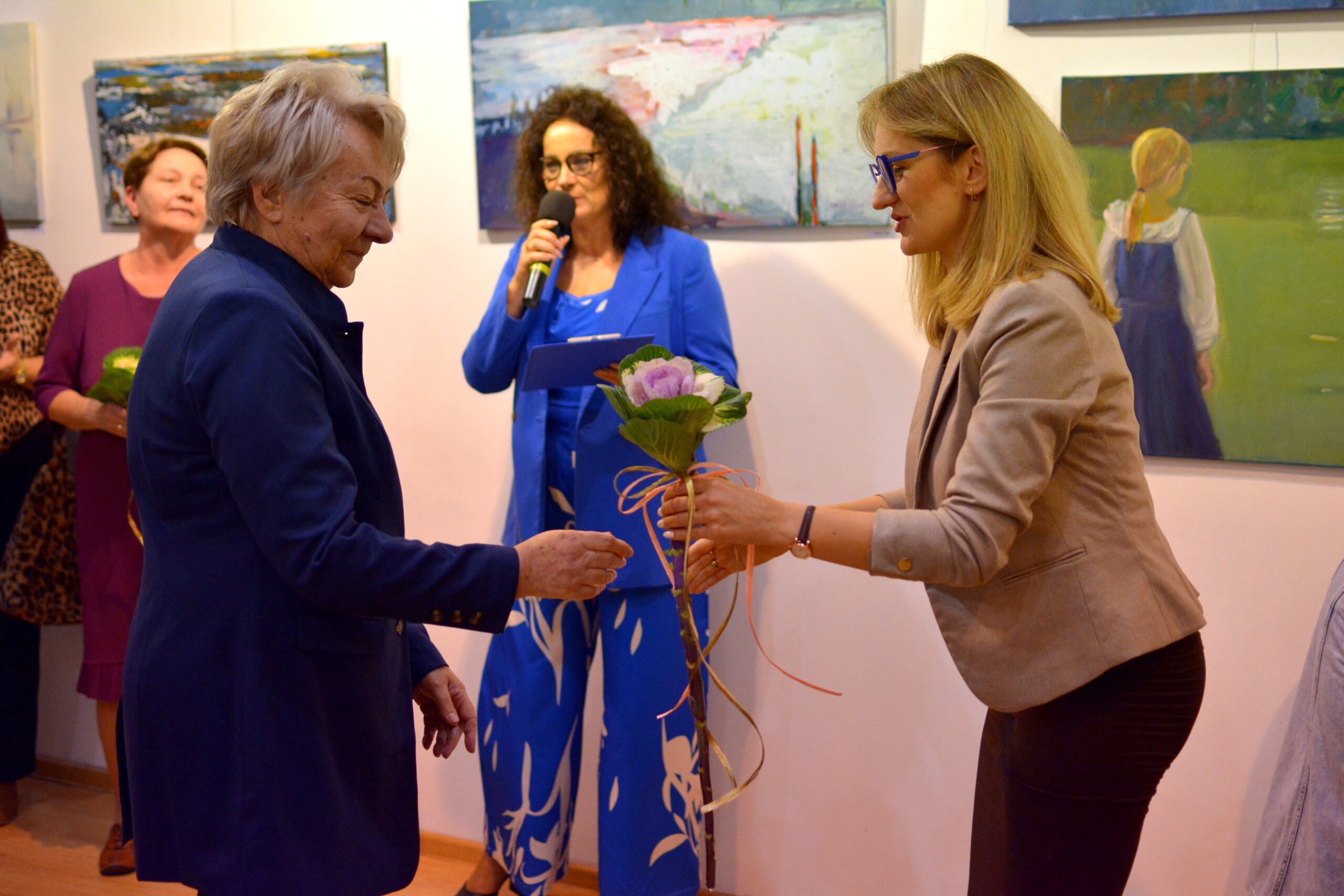 Wszyscy autorzy otrzymali kwiaty w ramach podziękowania za udział w plenerze. [- W zasadzie mogę już chyba powiedzieć, że wszyscy tu tworzymy jedną, wielką, artystyczną rodzinę. Dziękuję Wam za życzliwość, za waszą pasję i współpracę z naszą instytucją kultury. Oczywiście polecamy się na kolejne lata i kolejne projekty]- powiedziała dyr. GOK – Magdalena Ryziuk-Wilk.