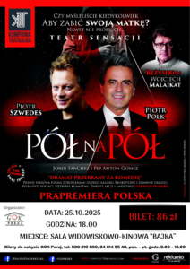 Szanowni Państwo, mamy zaszczyt zaprosić Państwa na niezwykłe wydarzenie teatralne – spektakl „PÓŁ NA PÓŁ” autorstwa Jordiego Sancheza i Pepa Antona Gomeza.