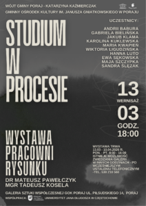 Wystawa to opowieść o rysunku jako drodze twórczej – o poszukiwaniu formy, eksperymencie, obserwacji i świadomym budowaniu wypowiedzi artystycznej. „Studium w procesie” podkreśla znaczenie samego aktu tworzenia – momentu pomiędzy pierwszą linią a dojrzałą kompozycją. To przestrzeń, w której można zobaczyć, jak rodzi się obraz i jak kształtuje się indywidualny język młodych artystów.