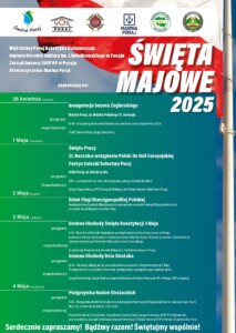 26 kw.2025 ŚWIĘTA MAJOWE 2025 Wójt Gminy Poraj Katarzyna Kaźmierczak, Gminny Ośrodek Kultury im. Janusza Gniatkowskiego w Poraju, Zarząd Gminny ZOSP RP w Poraju, Stowarzyszenie Marina Poraj zapraszają na: Święta Majowe 2025.